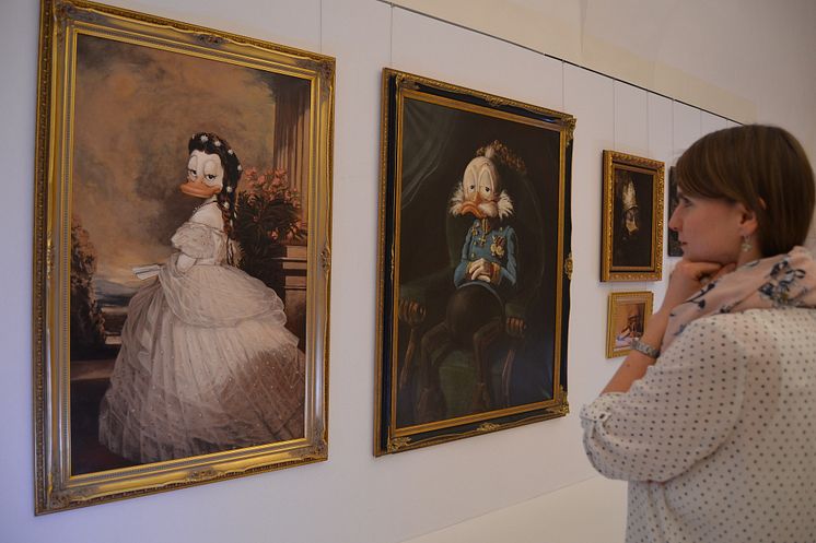 Museumspädagogin Marleen Dietz wirft noch einen letzten Blick auf die Bilder von Sissi und Kaiser Franz an (c)ASL Schlossbetriebe gGmbH