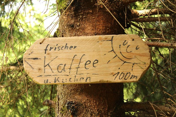 Unmittelbar am Kammweg: An den Wochenenden weisen originelle Hinweisschilder den Weg zum Kaffee-Kurt.