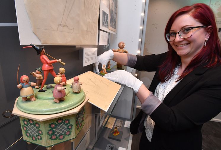 Wendt & Kühn_Marlis Rokitta, wissenschaftliche Mitarbeiterin, legt noch letzte Hand an die Ausstellungsstücke__Foto_Wolfgang_Schmidt