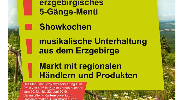 Aus einfachen Zutaten hochwertig zubereitet – Heimatgenuss pur! Im Erzgebirge weiß man aus Erfahrung, wie mit saisonalen und regionalen Produkten die größten Köstlichkeiten gezaubert werden. Die Zeit der Sommerküchen bricht an, vielerorts kommt der Herd vor die Tür und in Oberwiesenthal sogar auf den Marktplatz! Kulinarische Genießer können sich auf ein ganz besonderes Event am Samstag, den 29. Juni 2019 in Deutschlands höchstgelegener Stadt freuen.