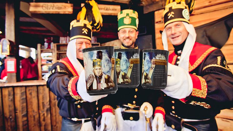 Den Bergmanns-Stollen und die Sammeltassen wird es wieder geben. Dieses Jahr hat die Freiberger Künstlerin Alina Budnitzki das Tassen-Motiv gestaltet, ein bergmännischer Trinkspruch rundet es ab. Es zeigt den Knappschaftsältesten mit Erzschale – zu Ehren des diesjährigen Silberrausch-Jubiläums. Alle Produkte gibt es ebenso wie die noch druckfrischen Essays von Sabine Ebert in der Silberstadt® Baude, einem Stand am Christmarkt Eingang sowie in der Tourist-Information am Schloßplatz.